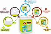 ⭐ صندوق پس انداز ATM: می توانید مانند دستگاه خودپرداز واقعی پول نقد یا سکه را در این اسباب بازی قرار دهید (صداها را تحریک می کند). فرآیند قرار دادن پول/سکه در خزانه به کودک شما کمک می کند تا مهارت های حرکتی ظریف را آموزش دهد.