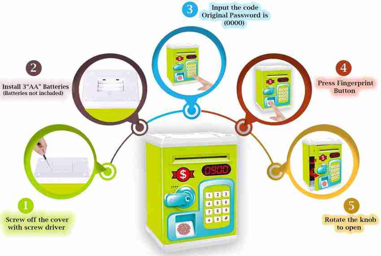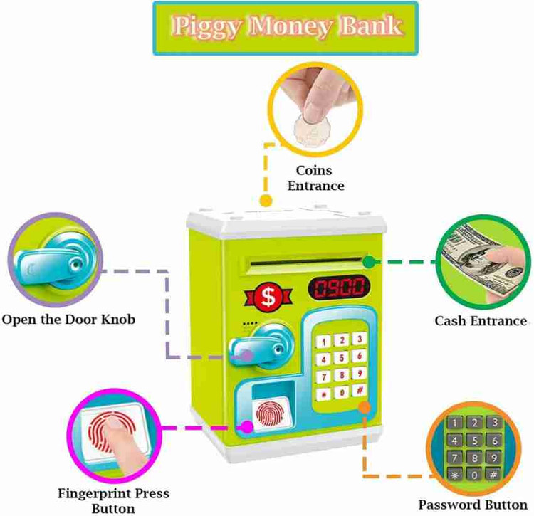 ⭐یادگیری از طریق بازی: این قلک الکترونیکی بهترین اسباب بازی وانمودی برای کودکان و کودکان نوپا است. از شما می خواهد که یک رمز عبور برای تقلید از تجربه معاملات پولی در دنیای واقعی وارد کنید. این یک فرصت عالی برای کمک به رشد آگاهی فرزندانتان از استفاده از پول است.