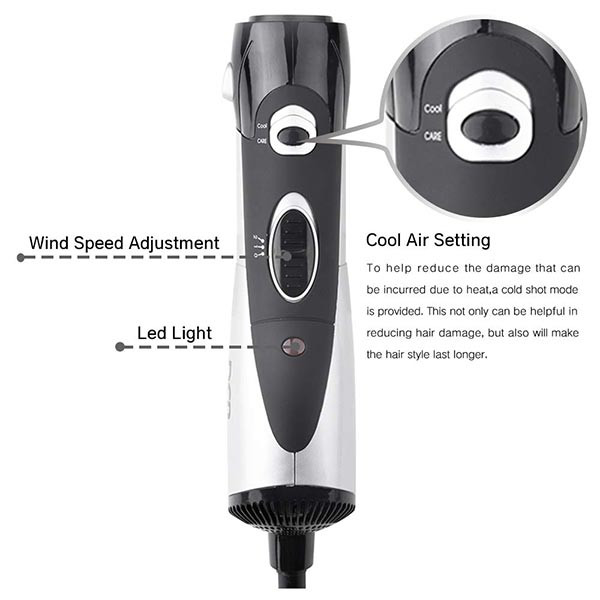 سشوار چند کاره دی اس پی Model:50003A دارای چند سری مختلف با کاربرد های مختلف است برای استفاده از برس صاف کننده، باید مو ها را مرطوب کرده و در میان آن قرار داد و از ریشه تا انتها کشید تا موها صاف شوند. برس پهن دارای کیسه هوا و بسیار نرم است و برای شانه کردن موها استفاده می شود. هنگام استفاده از مواد حالت دهنده مو به کمک سری دیسپانسر بهسرعت می توان حالت مورد نظر را تثبیت کرد. برای تعویض سری ها باید از دکمه آزادکننده روی دستگاه استفاده کرد.