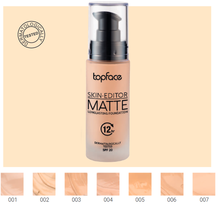 کرم پودر اسکین ادیتور مات تاپ فیس با فرمولاسیونی غنی شده با ترکیباتی از مواد فعال، و جلوه نهایی مات، بهترین انتخاب برای ایجاد پوستی صاف و مخملی است. مواد معدنی به کار رفته در فرمولاسیون این محصول به پوشش دهی بسیار بالای چین و چروک و علائم پیری پوست می پردازد. کرم پودر Topface دارای spf20 بوده تا علاوه بر پوشش دهی و آماده سازی پوست برای یک میکاپ حرفه ای، آن را از اشعه مضر خورشید نیز محافظت نماید.