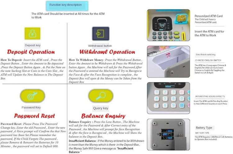 طراحی دکمه های کارت خودپرداز شخصی و رمز عبور، به دلیل نقش آفرینی و عملکرد آموزشی خوب، از ATM واقعی تقلید می کند.