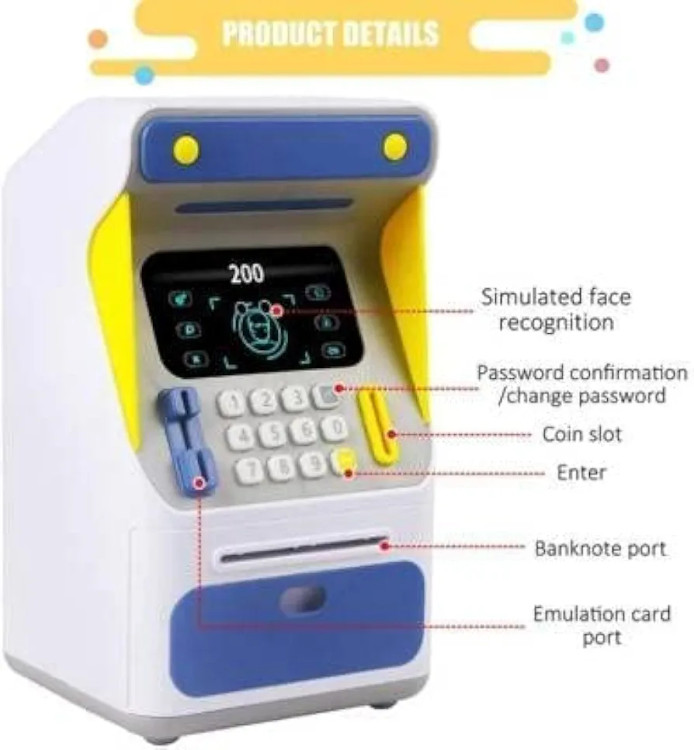 گاو صندوق هوشمند موزیکال صندوق امانات پول کودکان قلک پس انداز با کارت عابربانک شخصی، مدرن، رنگارنگ