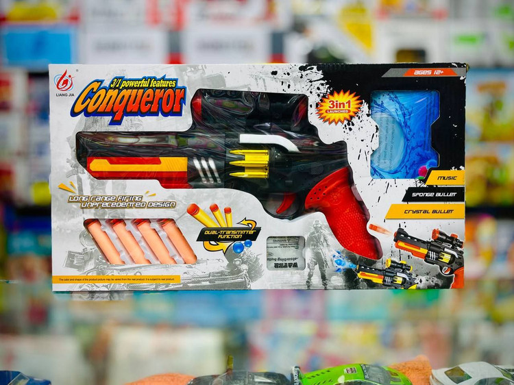 در ضمن تفنگ تیر ژله ای و ابری ۲ کاره دارای قابلیت شلیک گلوله های ژله ای می باشد. همراه این تفنگ یک بسته گلوله های ژله ای که از قبل آماده شده می باشد.