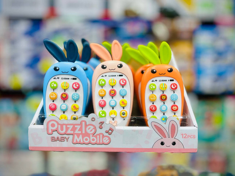 موبایل موزیکال اسباب بازی بچگانه دارای رنگبندی متنوع که توسط دو عدد باتری نیم قلمی شروع به کار کردن می کند. همراه این محصول یک بند رنگی جهت استفاده راحت تر دلبند شما قرار دارد. دکمه های برجسته ای روی این اسباب بازی کار شده که با فشردن هر کدام از آنها صدا و یا موزیک مربوط به آن دکمه پخش می شود. دکمه ای با طرح "دو فلش در جهت مخالف هم" روی محصول کار شده که با فشردن آن می توانید نوع موزیک و صدایی که پخش می شود را عوض کنید.