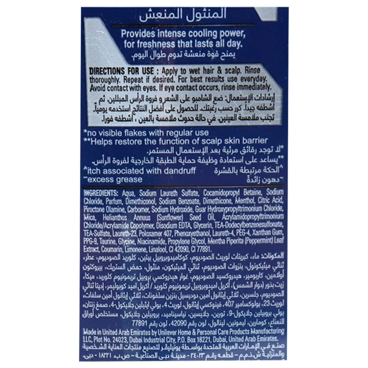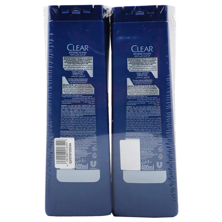 شامپو ضد شوره خنک کننده آقایان کلییر اماراتی مدل Cool Sport Menthol حجم 400 میلی لیتر