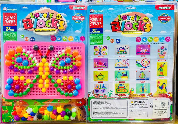 با استفاده از قطعات با کیفیت بالا و برد منحصر به فرد، کودکان میتوانند الگوهای مختلفی از جمله ماهی، هواپیما، تانک، موتور، فیل، نهنگ، گل، ماشین و عروسک را ساخته و به آن زندگی بخشند. علاوه بر این میتوانند هزاران شکل جدید دیگر را از ذهن خود به واقعیت تبدیل کنند و سازههای جدیدی را ایجاد کنند.