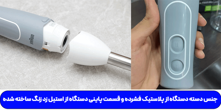 است و دسته راحت بدون لغزش در کف دست جا میشود. قسمت بالای دستگاه از پلاستیک فشرده و قسمت پایین از جنس فلز میباشد.