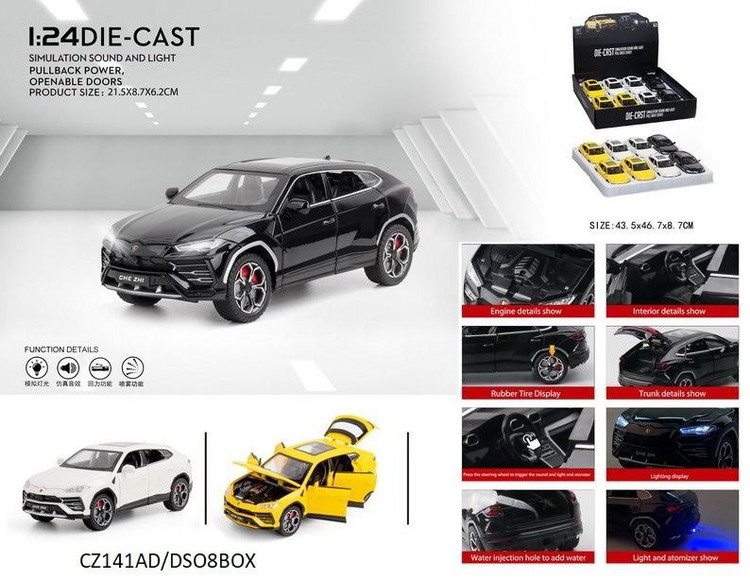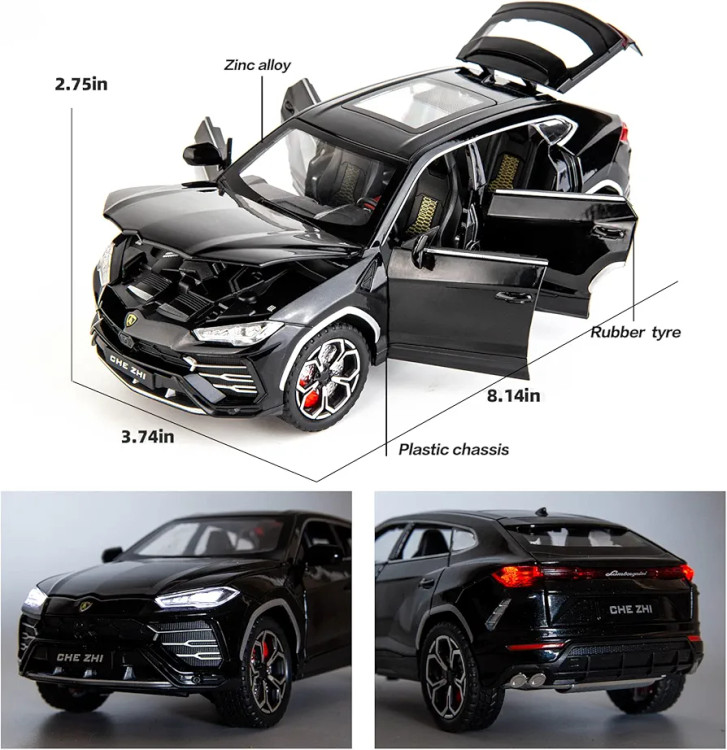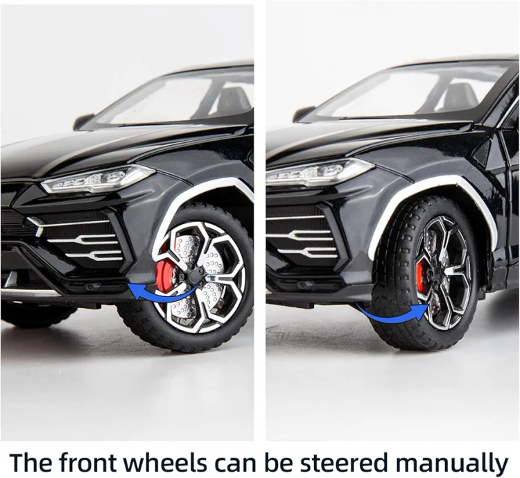2. 【عملکرد】 1. صدا و نور : چرخ عقب ماشین را فشار دهید یا فرمان را فشار دهید تا جلوه های نور و صدا ایجاد شود. 2. قابل باز شدن 6 درب، کاپوت و صندوق عقب: دکمه مشکی پایین ماشین را فشار دهید تا کاپوت به راحتی باز شود. 3. عملکرد قدرتمند عقب نشینی: بدنه را پایین نگه دارید و آن را به عقب بکشید، ماشین با نیروی کشش به سمت جلو حرکت می کند. 4. چرخ های جلوی ماشین را می توان به صورت دستی هدایت کرد.5. اثر جذب شوک شبیه سازی شده در چهار چرخ جلو و عقب.