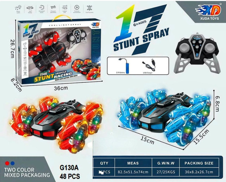 RC Stunt Car】 ماشین کنترل از راه دور می تواند در همه جهات حرکت کند، 360 درجه بچرخد، از هر دو طرف بچرخد، دریفت و تخلیه شود، با نورهای خنک، موسیقی و جلوه های اسپری، تجربه عملیات فوق العاده و جلوه های بصری را برای کودکان به ارمغان می آورد.