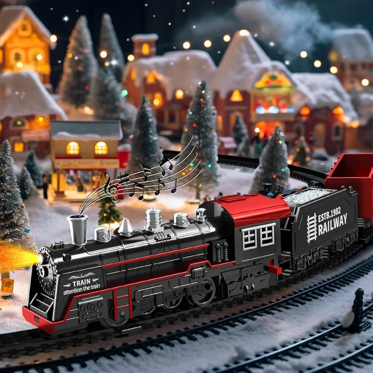ست قطار شامل - این اسباب بازی قطار برقی 13 عددی با 10 مسیر منحنی، 1 قطار موتور لوکوموتیو، 1 واگن مسافری و 1 واگن باری مجهز شده است. ابعاد مسیر بیضوی 30 اینچ در 51 اینچ است. شروع این سفر با قطار به 2 باتری AA نیاز دارد - شامل نمی شود.