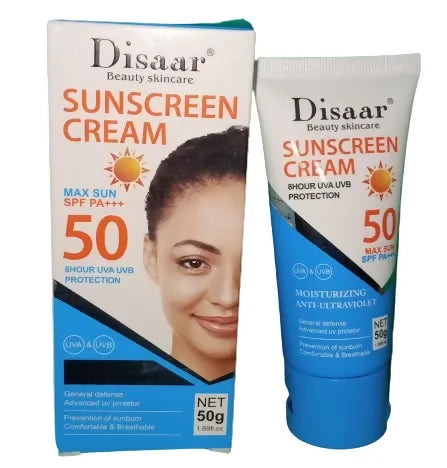 کرم ضد آفتاب حساس به UVA/UVB Disaar با SPF 50 برای محافظت در سطح بالایی از پوست حساس طراحی شده است.