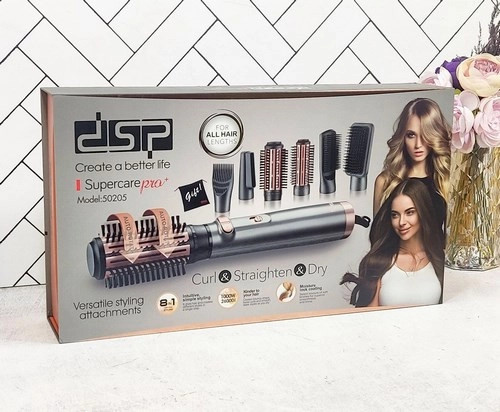 ۲ عدد برس چرخشی ۵۰ میل و ۳۸ میل برای حالت دهی ، برس ماساژ موی سر، برس تخت برای صاف کردن موی سر، برس انگشتی برای باز کردن گره موها و سری نازل هوا