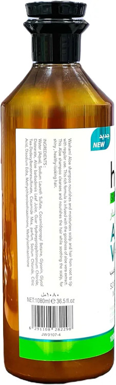 شامپو آلوئه واشامی با استفاده منظم از ریشه و نوک ، پوست سر و مو را از ریشه به نوک تغذیه و مرطوب می کند. این فرمول غنی به خوبی عصاره آلوئه ورا تزریق می شود. این شامپو آلوئه موهای خود را برای موهای براق و سالم به نظر می رساند و موها را تمیز و تغذیه می کند.