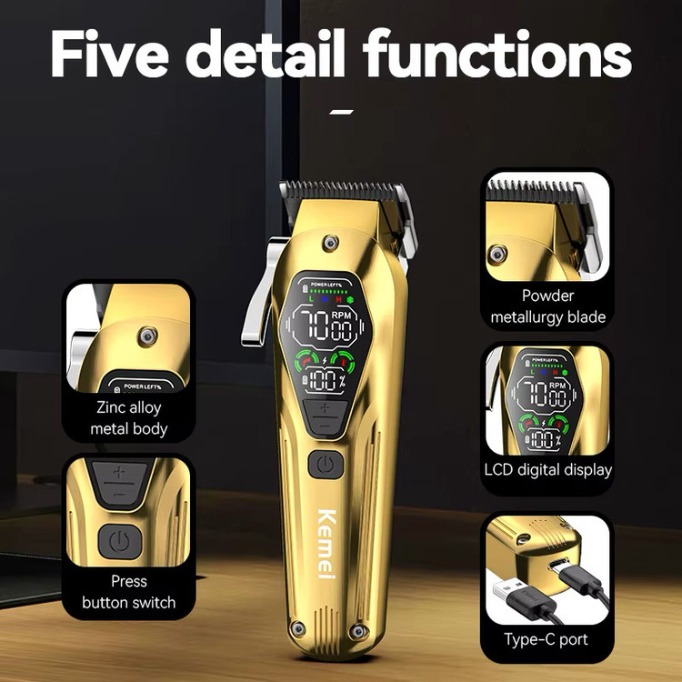ماشین اصلاح کیمی مدل KM-1698 دارای یک تیغه از جنس سرامیک با روکش متالوژیک پودری با خاصیت خود تیز شوندگی و تکنولوژی برش مستقیم میباشد .