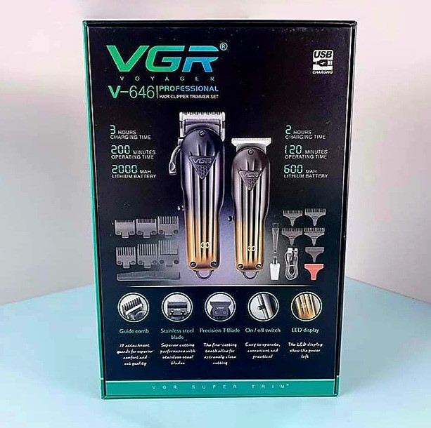 ست ماشین اصلاح ویجیآر مدل VGR V-646 یک مجموعه دو عددی شامل ماشینهای اصلاح حجمزن و خطزن است که برای اصلاح موی سر و صورت طراحی شده است. این ست با ویژگیهای متنوع و کاربردی، گزینهای مناسب برای استفاده خانگی و حرفهای محسوب میشود.