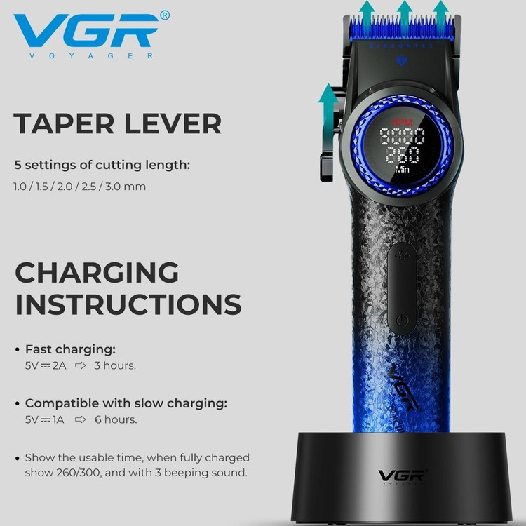 این دستگاه یک ابزار کوتاهی موی کامل و حرفهای است. هدف اصلی آن، ارائه دقت بینظیر برای فید (Fade) و خطزنیهای فوقالعاده تمیز است. V-001 با ترکیب تیغههای فولاد کربنی با چگالی بالا و یک موتور قدرتمند روتاری با قابلیت تنظیم دقیق سرعت در ۲۱ سطح، به کاربر اطمینان میدهد که موهای ضخیم و پرتراکم بدون هیچ کشیدگی یا گیر کردنی اصلاح خواهند شد. این کنترل دقیق، دستگاه را برای برش مو در طولهای ۱ میلیمتر تا ۲۷ میلیمتر و دستیابی به ظاهری حرفهای، ایدهآل ساخته است. V-001 انتخابی عالی برای آرایشگرانی است که به دنبال ابزاری با دوام، قوی و با تمرکز بر جزئیات هستند.