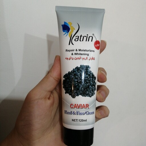 کرم آبرسان دست و صورت خاویار ترمیم کننده و سفید کننده پوست برند کاترین حجم ۱۲۰ گرم