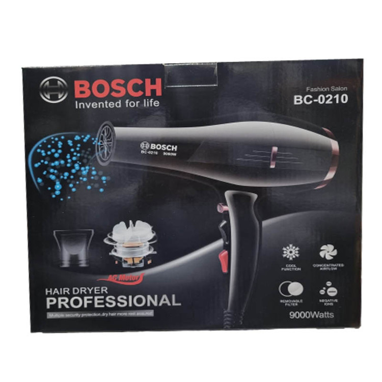 سشوار بوش Bosch مدل bc-0210 با موتور 9000 واتی از نوع DC، قدرت و سرعت را با هم آمیخته تا خشککردن و حالت دادن به موها سریعتر و راحتتر انجام شود. دارای درجهی قابل تنظیم برای سرعت و دمای باد خروجی وجود دارد که میتوان حالت مناسب را انتخاب کرد.