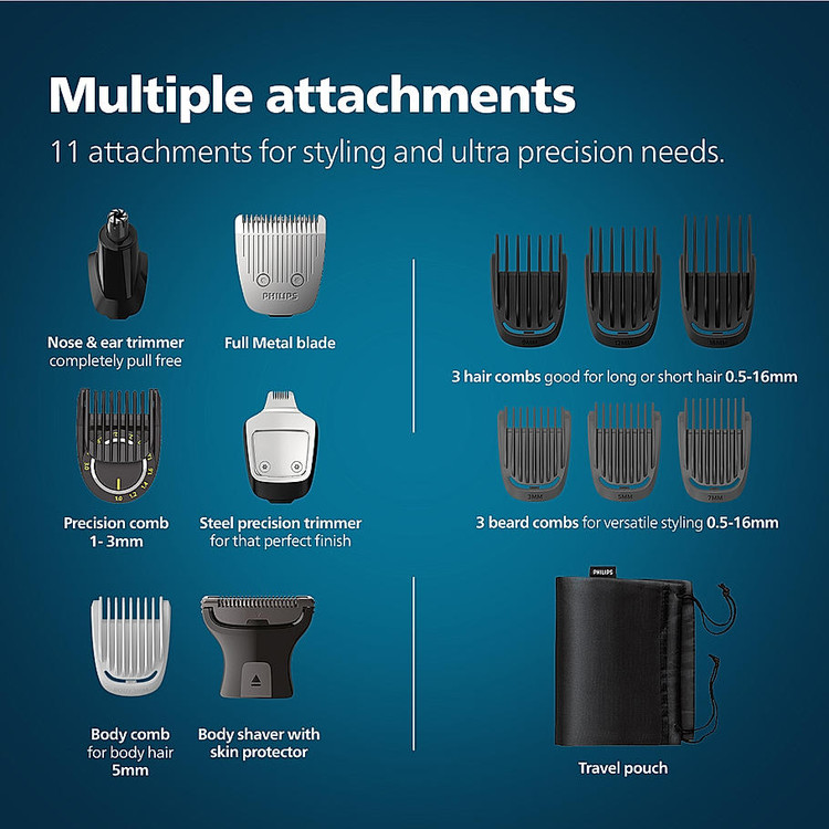 All in One Trimmer I 13 in 1 Face, Body & Private Parts I Professional Finish I Twin Trim All Metal Steel Blades I Precision Trimming Comb | 120 min Runtime I 5 min Quick Charge I MG7920/65