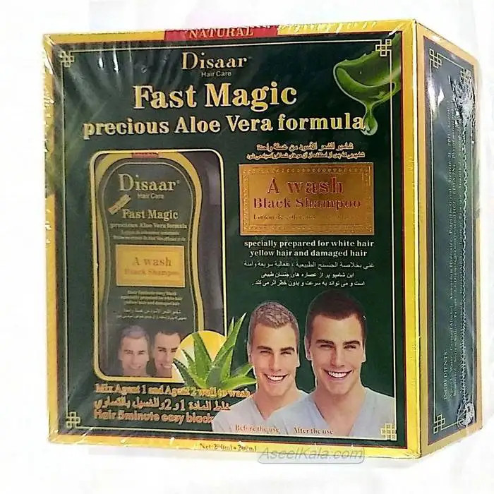 رنگ میشکی بسته دو عددی حاوی ترکیبات عصاره های گیاهی و آلوئه ورا طبیعی محافظ مو شامپو رنگ مو دیسار مدل فست یک محصول بی نظیر میباشد . شامپو رنگ موی مشکی برای رفع سفیدی موها عرضه شده است . شما با استفاده از این محصول بیش از ۱۵ سال جوان شوید . با این شامپو رنگ دیگر نیازی به رنگ مو ندارید . فقط در ۵ دقیقه با موهای سفید خداحافظی کنید . نیازی به هزینه های گزاف و صرف وقت زیاد ندارید با طرز استفاده بسیار آسان که شما را شگفت زده خواهد کرد . این شامپو از عصاره آلوئه ورا طبیعی است که به سرعت وبدون هیچ عارضه ای اثر خود را میگذارد .
