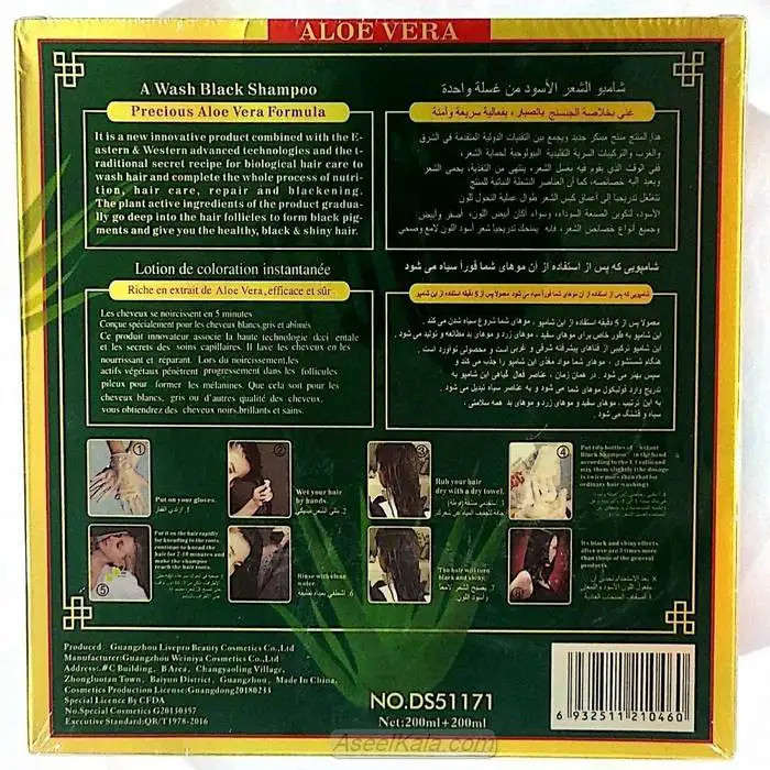 - طریقه مصرف : به مدت ۵ تا ۱۰ دقیقه ( بستگی به رنگ باز کردن مو دارد ) شامپو رنگ را به موهای خود ریخته سپس ماساژ دهید بعد از مدت ۵تا ۱۰ دقیقه موهای خود را بشویید و آبکشی کنید . به همین راحتی تمامی موهای شما مشکی شده و از شر موهای سفید راحت میشوید . با این شامپو موهایی رنگ شده و زیبا خواهید داشت و از جوانی و زیبایی خود لذت ببرید
