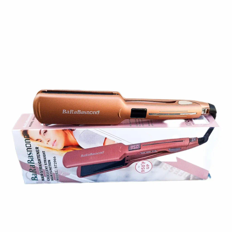 برند باراباس نانو دارای محصولات متنوع و حرفهای است که در سالنها برای آرایشگران و حتی مصرف کنندگان در منزل مناسب میباشد. اتو مو باراباس نانو مدل ST2966 محصولی با طراحی نوین که در عین زیبایی، دارای تکنولوژی پیشرفته است. چرخش 360 درجه سیم انتهایی این امکان را فراهم میکند که مدل ST2966 علاوه بر صاف کردن برای حالت دادن مو نیز قابل استفاده باشد. دمای این اتو مو قابل تنظیم بین 230 تا 510 درجه سانتی گراد (450 تا 950 درجه فارنهایت) می باشد که توسط نمایشگر تعبیه شده بر روی دستگاه قابل مشاهده است . دکمه تنظیم دما به کاربر امکان می دهد تا درجه حرارت اتو را به دلخواه تنظیم کند.این ویژگی مناسب افرادی است که موهای حساسی دارند و حرارت بالای اتو ، به موهای آنها آسیب خواهد زد. پس اگر شما هم موهای حساسی دارید یا می خواهید حرارت کمتری را به موهای خود وارد کنید، این اتوهای مو برای شما مناسب است. این مدل همچنین دارای قفل امنیتی است که در صورت لزوم میتوانید از آن استفاده کرده و خطر آسیب رساندن به اشیا اطراف هنگام داغ بودن صفحات را به حداقل برسانید.